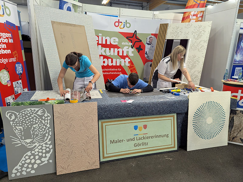 Neben zahlreichen regionalen Unternehmen und Institutionen präsentierte sich die Maler- und Lackiererinnung Görlitz und informierte interessierte Jugendlichen über den Beruf des Maler/Lackierers in all seinen Facetten - ob virtuell im Truck oder reell durch handwerkliche Vorführung einzelner zu erlernender Techniken im Maler- und Lackiererhandwerk.